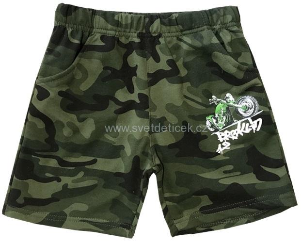 Pěkné chlapecké maskáčové šortky značky Kugo s obrázkem motorky.